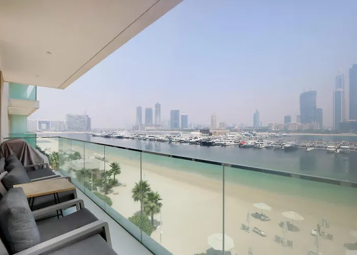 O apartamento Livbnb - Chic 1Br, Beachfront & Marina Views Dubai de 76 m^2 é um óptimo lugar para ficar no bairro Palm Jumeirah em Dubai, a cerca da uma distância de 4.3 km do Parque Temático Dolphin Bay. A cerca de 10 minutos andando da Universidade de Wollongong no Dubai, este apartamento de 1 quartos dispõe de piscina e de um jardim privado.